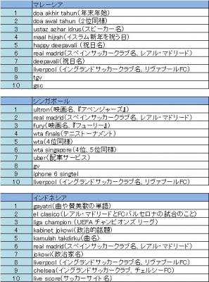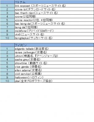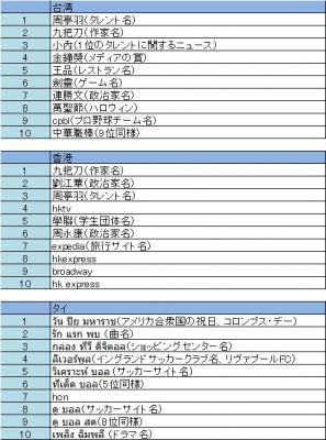 ・アジア11カ国の検索キーワードトレンド2014年9月29日~2014年10月5日 2014年10月6日リリース