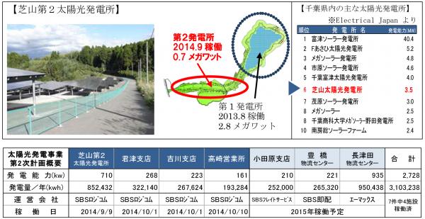 SBSグループは、太陽光発電事業第2次計画に基づき千葉県芝山町で稼働中の芝山太陽光発電所を増強し9月に「芝山第2太陽光発電所」を竣工したほか、10月には千葉県君津市、埼玉県吉川市、群馬県佐波郡玉村市の物流施設屋上に太陽光発電設備を完成させ、営業運転を開始しましたのでお知らせいたします。