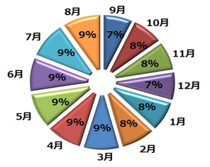 日本の人気観光地と、キーワード「旅行」、「観光」、「ホテル」、「ツアー」を組み合わせ(例:北海道 旅行)、アジア10カ国を対象に、月間の検索数の推移を調査いたしました。各国で大型連休の時期は異なりますが、年間を通して見ると、アジア各国の人々は、3月~8月に日本の人気観光地のホテルやツアー等を検索している傾向にあることが見えてきました。以下の図は、各国の日本の人気観光地に関するキーワードの年間の合計検索数に対する各月の検索数割合となります。