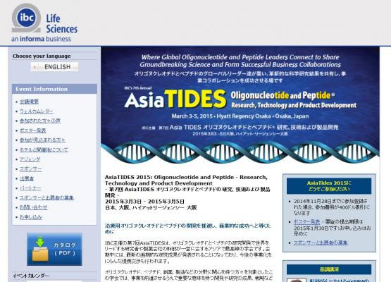 学会:「AsiaTIDES 2015: Oligonucleotide and Peptide - Research, Technology and Product Development-第7回 AsiaTIDES オリゴヌクレオチドとペプチドの研究、技術および製品開発」