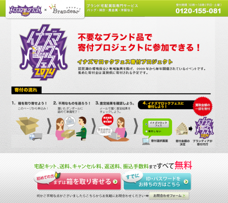 ブランド品宅配買取サービス&オークションサイト「ブランディア(http://brandear.jp/)」(以下、ブランディア)を運営する、株式会社デファクトスタンダード(本社:東京都大田区、代表取締役社長:尾嶋崇遠)は、6 年目を迎え、合計で10 万人を動員し大成功に終わった「イナズマロック フェス 2014」と協力し、チャリティーオークションを11 月4 日より開催します。