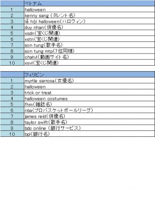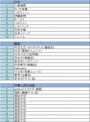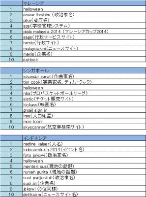 ・アジア11カ国の検索キーワードトレンド2014年10月20日~2014年10月26日2014年10月27日リリース