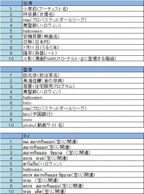 ・アジア11カ国の検索キーワードトレンド2014年9月29日~2014年10月5日 2014年10月6日リリース