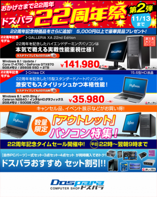■『22周年記念特別パソコン&特価パソコン!』(第2弾は11月13日(木)まで)