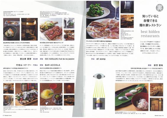 また、ショッピングやグルメスポットなどよくあるガイドとはひと味違う、知る人ぞ知る「裏トウキョウ」をまとめた別冊付録にも注目。おしゃれな業界人の口コミ情報満載の新感覚ガイドブック。大人の夜のたまり場である“裏渋谷”の名サロン(バーや居酒屋など)、ふらりと一人でも立ち寄れる美味しいビストロ、レストラン、知っていると自慢できる隠れ家レストラン、クリエイターの私的アドレス、進化する東京コーヒーカルチャーが楽しめるお店など、最新の東京の“食”情報が満載!