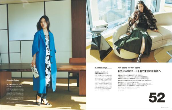 今狙うべきアウターを特集。「アンダーズホテル」、キュレーションストア「la kagu」、エンターテインメント空間「ELE TOKYO」など、東京の新名所でロケ。