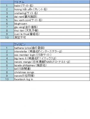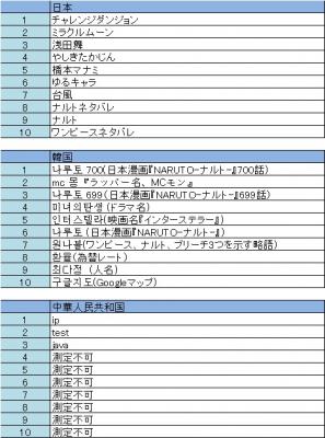 ・アジア11カ国の検索キーワードトレンド2014年9月29日~2014年10月5日 2014年10月6日リリース
