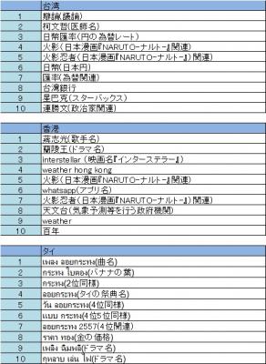 ・アジア11カ国の検索キーワードトレンド2014年9月15日~2014年9月21日 2014年9月22日リリース