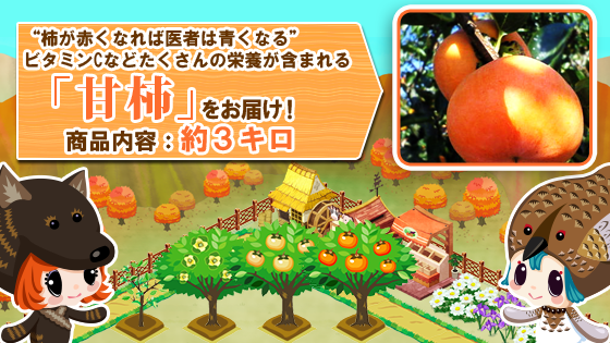 本イベントでは毎月ゲーム内でイベントを開催。同市にまつわるクエストのクリア報酬として円錐形土偶(国重要文化財)等同市オリジナルのデコレーションアイテムを配布いたします。また、ゲーム内で特定作物を育てると、抽選で同市特産フルーツ等を南アルプス市より毎月プレゼント。11月は富有柿(3kg)を抽選で30名様にお届けいたします。また、提携イベントは2015年2月まで毎月開催いたします。