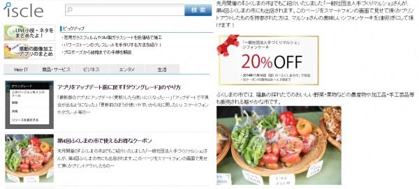 株式会社SQOOL(本社:千葉県千葉市美浜区 代表取締役:加藤賢治)と、イズクル(岐阜県大垣市 代表:竹中文人)は、2014年11月16日(日)に福島県福島市で開催される「第4回 ふくしまの市」で使う事ができる「シフォンケーキの割引チケット」を、2014年11月12日(水)、「検索サイト iscle(http://www.iscle.com/)」にて公開しました。