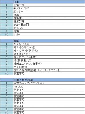 ・アジア11カ国の検索キーワードトレンド2014年11月3日~2014年11月9日 2014年11月10日リリース