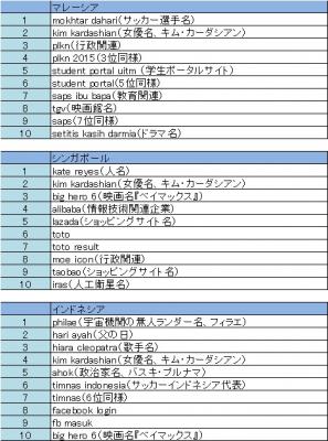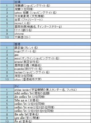 ・アジア11カ国の検索キーワードトレンド2014年10月7日~2014年10月13日2014年10月14日リリース