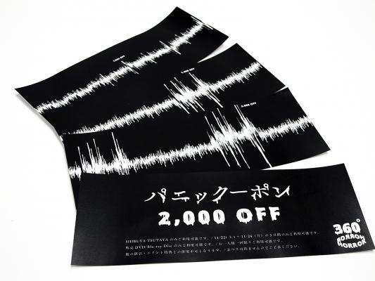 また、本イベントでは、CCCグループであるIMJとしてTSUTAYA店舗と連動し、『360°ホラー』を観て上昇した“心拍数”の度合いに応じて「パニックーポン(パニック+クーポン)」(100円~2,000円までの割引)を発行。SHIBUYA TSUTAYAに在庫している映像販売商品(DVD/Blu-ray)を対象として、当該店舗にて割引券としてご利用いただけます。