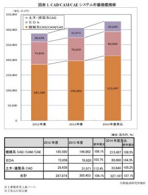 ◆ 2014年度の国内CAD/CAM/CAEシステム市場規模は3,272億円の見込み、円安により輸出型製造業がけん引