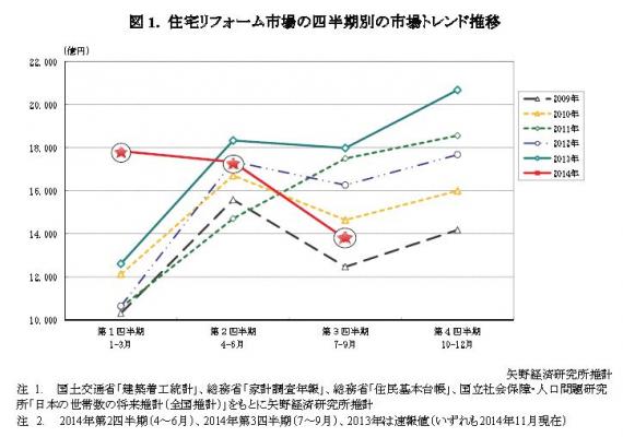 ◆2014年第3四半期の住宅リフォーム市場規模は前年同期比23.4%減