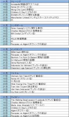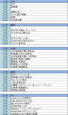 ・アジア11カ国の検索キーワードトレンド2014年11月10日~2014年11月16日 2014年11月17日リリース