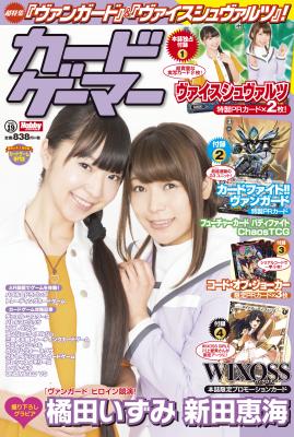 カードゲーム専門誌「カードゲーマーvol.19」は、本誌独占付録『ヴァイスシュヴァルツ』特製PRカード×2枚や『カードファイト!! ヴァンガード』特製PRカード、『コード・オブ・ジョーカー』限定PRカード×3枚、『ウィクロス』本誌限定プロモーションカードなど、豪華付録でお届けします。表紙は『ヴァンガード』ヒロインが競演、橘田いずみさんと新田恵海さん!今号も永久保存必至の内容です!