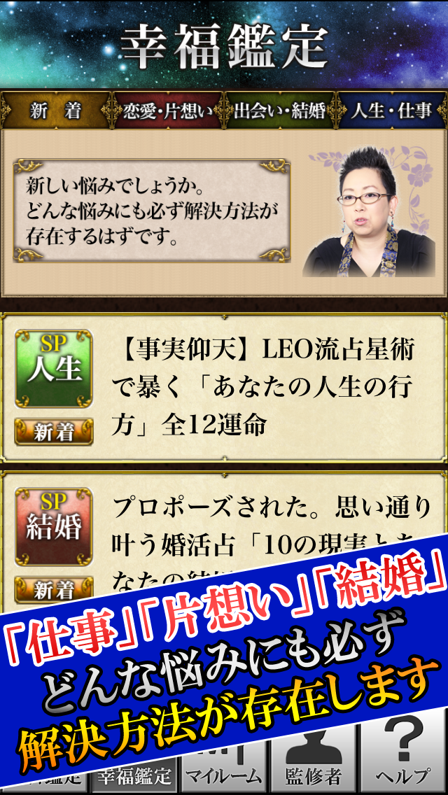 そんな彼女が生み出した英国式奥義によって、ハンデやコンプレックスを抱え、悩める日々を過ごす相談者に現状の打開策や訪れる運命を示し、幸福を得るための知恵、考え方をお伝えします。