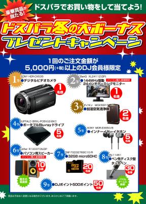 ドスパラ通販・店舗にて1回のご購入金額が5,000円(税抜)以上のDJ会員様を対象に、抽選の上、豪華賞品をプレゼントいたします、
