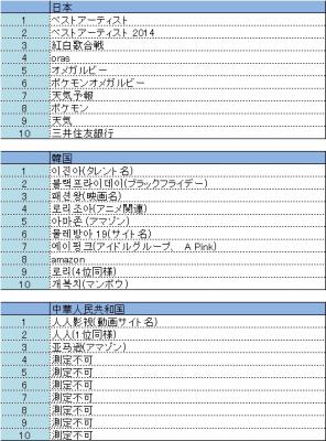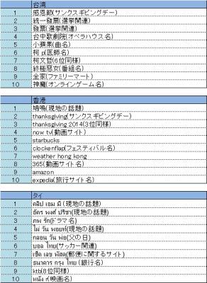 ・アジア11カ国の検索キーワードトレンド2014年11月3日~2014年11月9日 2014年11月10日リリース