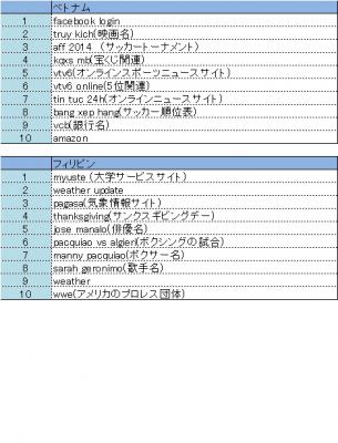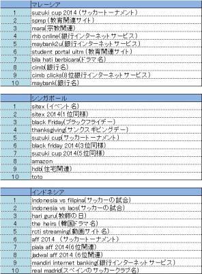 ・アジア10カ国の検索キーワードトレンド2014年11月17日~2014年11月23日 2014年11月25日リリース