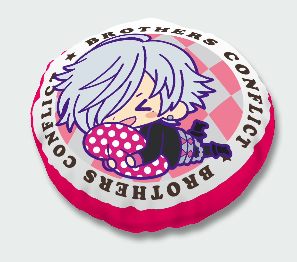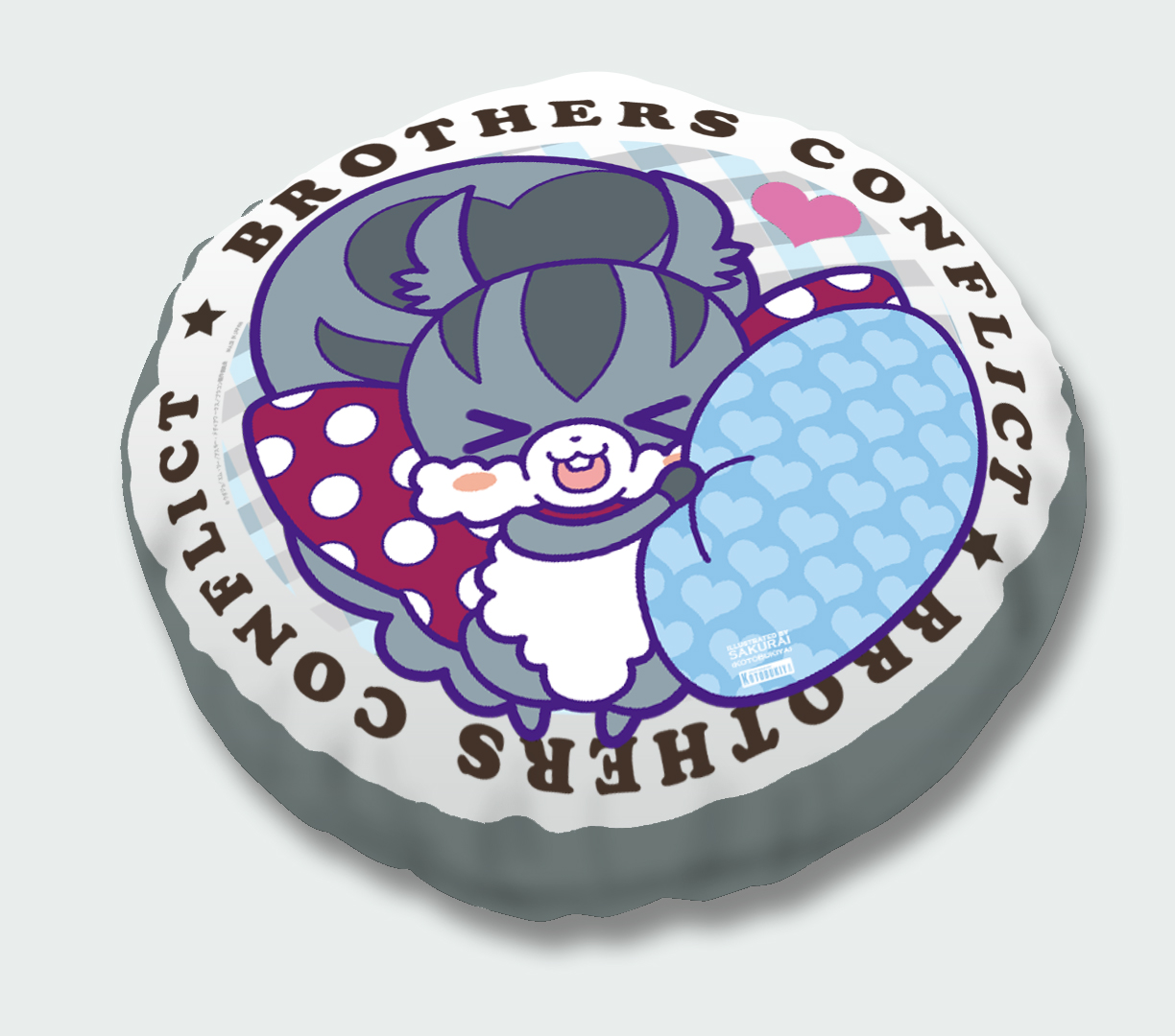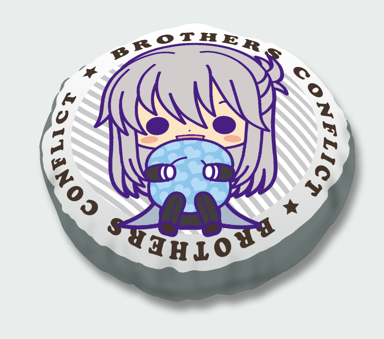 イベントで先行販売した「My Dear☆クッション」を、コトブキヤ直営店舗限定でも販売します。種類は朝日奈 椿/朝日奈 梓/朝日奈 棗/ジュリの全4種。イラストはすべて人気イラストレーター・サクライ氏による描き下ろしを使用しました。表面にはキャラクターのイラストを大きくプリントし、裏面には『BROTHERS CONFLICT』のキャラクター達がちりばめられたポップな総柄をプリント。直径約28cmとミニサイズのクッションなので、ギュッと抱きしめやすくコレクションしやすいアイテムです。オフィスやお部屋、是非色々なシーンでお気に入りのキャラクターと一緒にお過ごし下さい。