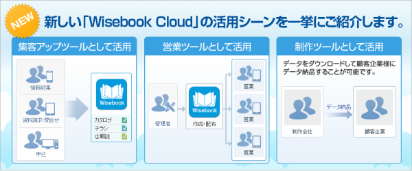 これまで Wisebook Cloud サービスの提供範囲は、PC や iOS、Android などの様々なデバイスから利用できる電子カタログの制作や配信環境を提供することでした。