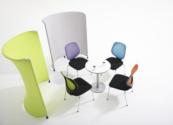 熱がこもらず、発色の美しい背もたれのメッシュ素材とシンプルで優雅な形状が、オフィスをスタイリッシュに演出します。カラーは、オフィスチェア「353」で展開していたブラック・ライトブルー・イエローグリーン・オレンジの4色に加え、ライトグレーとバイオレットの2色が新登場。6色のカラーバリエーションでオフィスを鮮やかに彩ります。