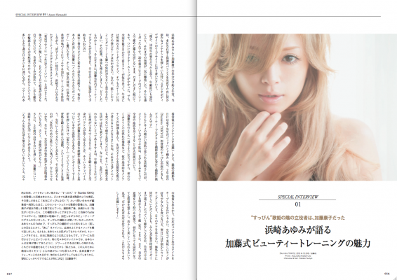 約2年前、メイクをいっさい施さない“すっぴん”で、雑誌『Numero TOKYO』に初登場した浜崎あゆみさん。どこまでも透き通る陶器のような素肌。その美しさゆえに「本当にすっぴんなの!?」という問い合わせが編集部に殺到したほど。このセンセーショナルな歌姫の登場にも、加藤康子が彼女の美しさを陰で支えていました。加藤のレッスンに通って約5年の浜崎あゆみさんが語る「加藤式ビューティートレーニングの魅力」のスペシャルインタビューを掲載。