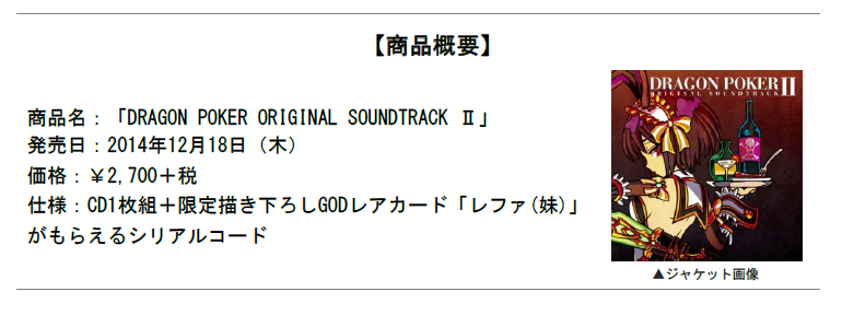 ◆『ドラゴンポーカー』のオリジナルサウンドトラック第2 弾 特設サイト◆