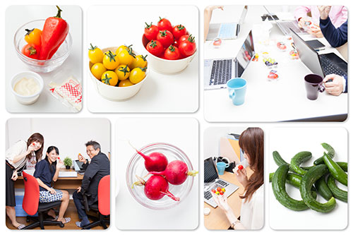 OFFICE DE YASAIは、オフィスでそのまま食べられるハンディサイズの、新鮮で旬な野菜・果物を毎週お届けするサービスです。オフィス内で野菜を摂りやすい環境を提供し、オフィスワーカーが不足しがちな栄養素を手軽に補給できるスマートな健康づくりをサポートしています。従業員の健康や働きやすい環境・福利厚生づくりに対する意識の高い企業から大変好評いただいており、東京23区を中心に導入企業が急増しています。