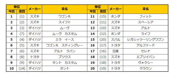 11月のランキングでも先月に引き続き、ワゴンRを筆頭とするトップ3の顔ぶれに変化はありませんでした。全体的に動きの少ない月となりましたが、その中でキラリと光る躍進を見せたのが、先月20位に久々のランクインを果たしたレガシィツーリングワゴン。今回は5ランクUPです!タント&フィットは4ランクUPです!早いもので今年も残すところ僅かですが、2014年も多くの新車種が発売されました。彼らが翌年の中古車市場を賑わしてくれることでしょう。今年最後のランキングに波乱はあるか!?乞うご期待!