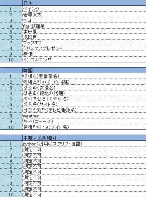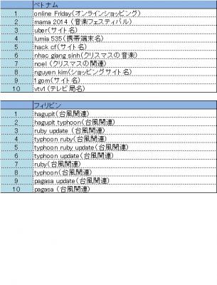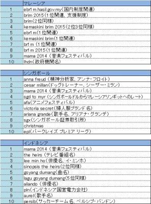 ・アジア10カ国の検索キーワードトレンド2014年11月24日~2014年11月30日 2014年12月1日リリース