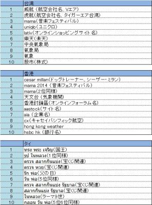 ・アジア11カ国の検索キーワードトレンド2014年10月20日~2014年10月26日2014年10月27日リリース