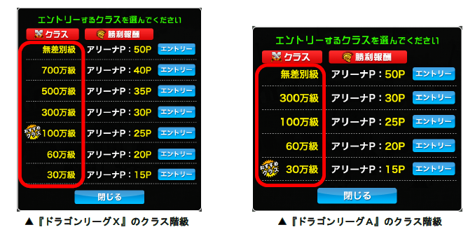※クラスの階級は『ドラゴンリーグX』と『ドラゴンリーグA』で異なります。