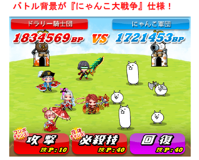 う対人戦バトルで、背景が、あの人気アプリ『にゃんこ大戦争』仕様になり、