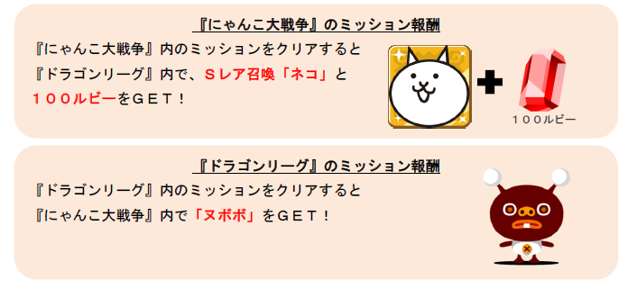期間中、『にゃんこ大戦争』及び『ドラゴンリーグ』内で指定されたミッションを