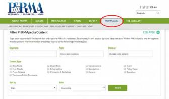 また、今回の再設計によりPhRMAのグラフィック・データを全て一ヶ所に集められるようになり、PhRMA関係者やサイトを訪れるユーザーが、ビジュアルコンテンツ(ソーシャルメディアの共有可能情報、チャート、インフォグラフィックなど)をトピックごとに閲覧し、共有することができるようになりました。PhRMApediaを利用される方は、http://www.phrma.org/phrmapediaより、コンテンツのタイル表示をご覧ください。フィルター機能を用いて表示内容を制限すると特定のカテゴリーのみを絞り込むことができます。また、全体表示を閲覧すると、http://www.phrma.orgに関する最新ニュースやグラフィック、更新情報を確認することもできます。
