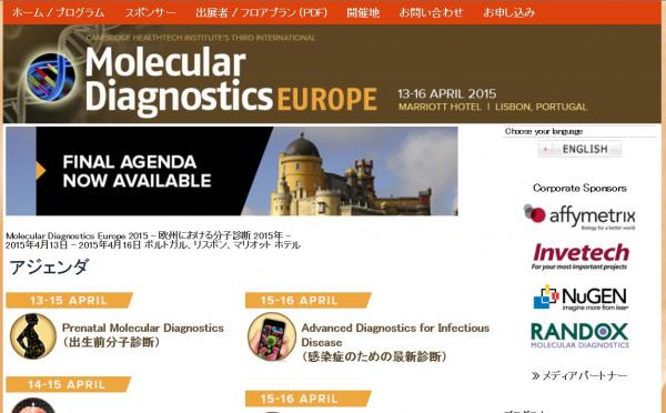 学会:「Molecular Diagnostics Europe 2015 - 欧州における分子診断 2015年」
