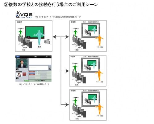 VQSマーケティング株式会社(本社:京都市、取締役社長:向井 猛彦)は、高等学校の遠隔教育を対象とした遠隔授業システム「VQSコラボLearning」の無償提供を2014年12月9日より開始いたしました。お申し込み日から2016年3月31日(木)までの間、先着10団体の自治体に対し、遠隔授業システム『VQSコラボLearning』を1年間無償提供いたします。これは、文部科学省の高等学校における遠隔教育の在り方に関する検討会議(第6回)の答申を受けてのものです。