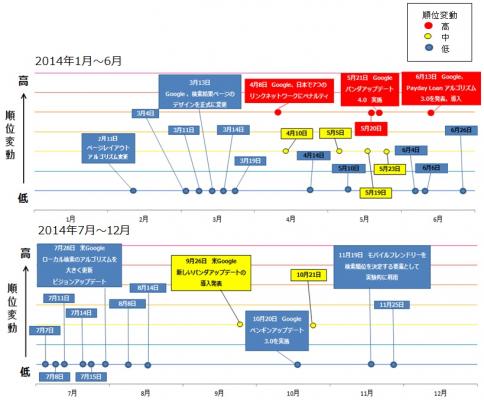 2014年はある程度これらの精査が進み、専門家以外の人も啓蒙がなされた段階に入ったと言えるのではないでしょうか。Googleはインターネットユーザーに対して最適な検索結果を提供したいという思いから、単にSEO目的だけのサイトや不正な外部リンクを貼っているサイトを、排除する動きがあることを世間に示してきたと言えます。