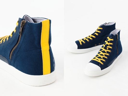 ネクタイをイメージしたイエローのシューレースなどスニーカーをキャンバスに『ルドガー』の魅力をいっぱいに表現しました。