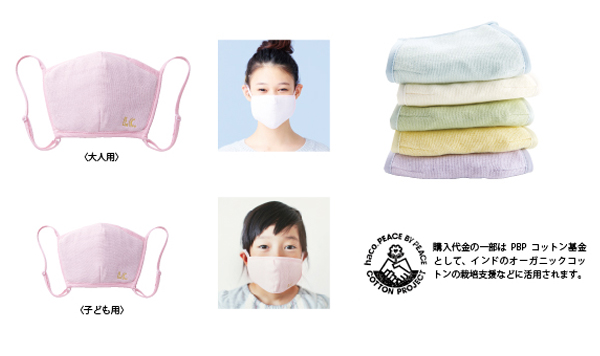 i.c.スペシャルWACフィルターを入れる専用ポケット付きのマスクです。フェリシモが運営するPEACE BY PEACEオーガニックコットンプロジェクトのオーガニックコットン素材(※)を使用し、気分が上がるデザインとカラーで仕上げました。ひもと上部の細いワイヤーでフィット感を調節でき、オーガニックコットン素材を4層にすることで、ふんわりやわらかなつけ心地となっています。洗濯機で洗って繰り返し使えます。大人用・子ども用の2サイズあり。「PEACE BY PEACEコットン基金」付きで販売します。