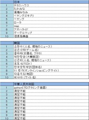 ・アジア10カ国の検索キーワードトレンド2014年12月1日~2014年12月7日 2014年12月8日リリース