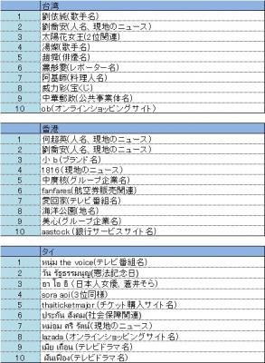 ・アジア11カ国の検索キーワードトレンド2014年11月3日~2014年11月9日 2014年11月10日リリース