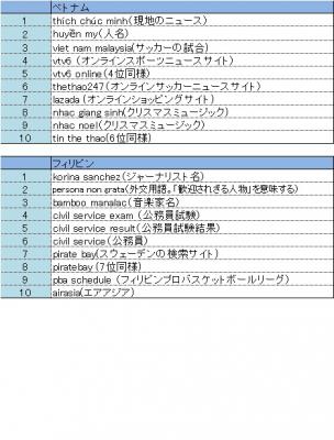 ・アジア10カ国の検索キーワードトレンド2014年11月24日~2014年11月30日 2014年12月1日リリース