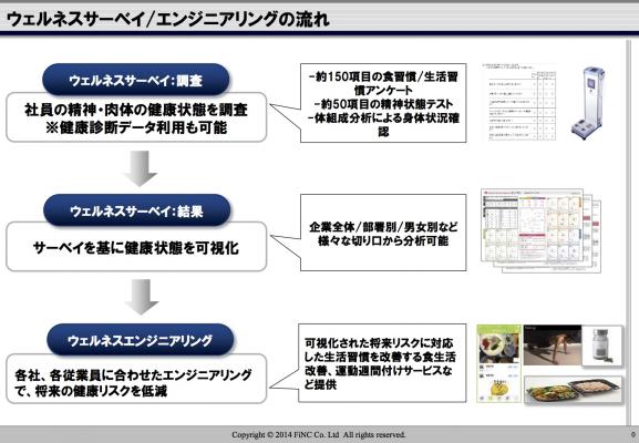 今回提供する「ウェルネス経営ソリューション」は、これまでのノウハウを基に開発したもので、企業の健康課題をトータルで解決可能なサービスになっています。創業時から取り組んでいた評価サービスを用いて従業員の心身の健康状態を把握し、その後はその結果に合わせた最適なソリューションを提案いたします。