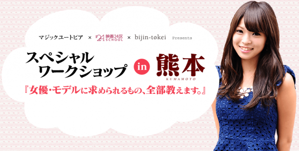 今回のワークショップは、モデル、女優としてのスキルを磨いていただくワークショップ。女優として活躍したいものの、きっかけがわからない地方の役者やモデルが多くいる中、様々なナレッジを伝えていくワークショップを企画できないか?という趣旨の下、2015年1月熊本市にて開催いたします。