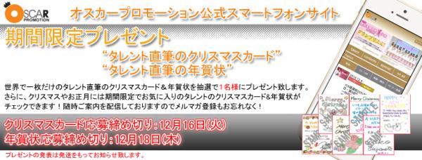 オスカープロモーション公式スマートフォンサイト会員様限定! 所属タレントから直筆のクリスマスカード&年賀状がもらえるキャンペーン実施中!