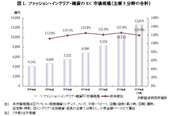 ◆2014年度の市場規模は前年度比120.0%の1兆2,614億円と堅調な成長を予測